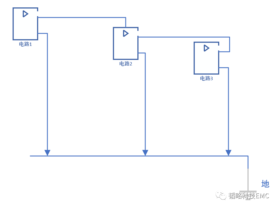 其中的一个原因是因为电流流过一个电阻时,就要在电阻上产生电压。我们用作地线的导体都是有一定阻抗的。因此地线电流流过地线时,就会在地线上产生电压。我们在设计电路时,往往将地线作为所有电路的公共地线,因此地线上的电流成分很多,电压也很杂乱,这就是地线噪声电压。如下图,电路1到电路3都接地,但是接地的点电路1阻抗与电路3差异非常大。