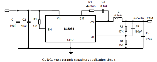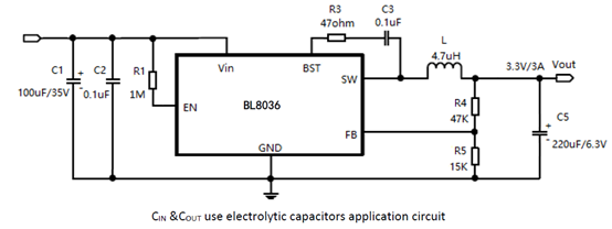 BL8036的是一款同步芯片,实现了功率器件的高度集成。内部集成了补偿电路,无需外围环路补偿电路。所以外围器件很少,电路简单,客户工程师调试方便。
